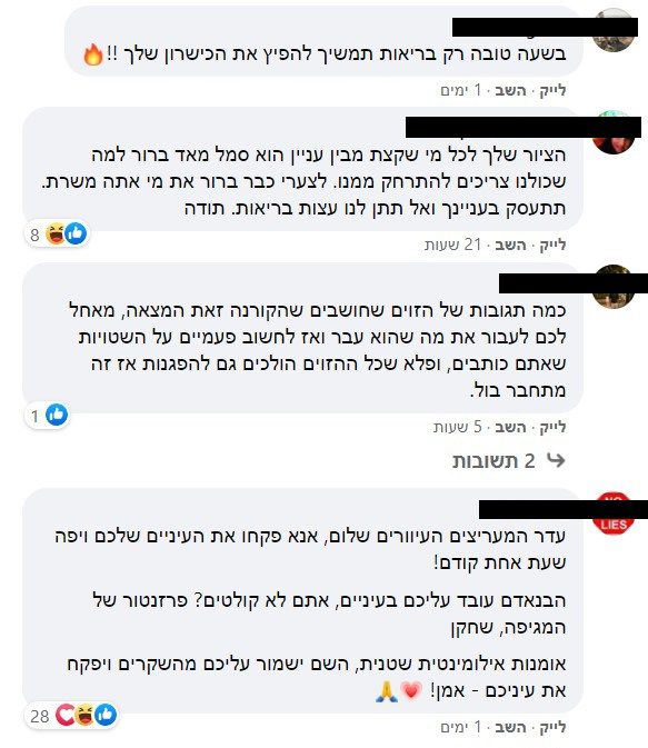 בין שלל התגובות שקיבל השחקן ליאור כלפון בפוסט שפרסם בפייסבוק, תקפה גולשת אנונימית בשם קרן והאשימה אותו: "אתה הפרזנטור הכי טוב שהיה לשקרונה..רק חבל שעל הדרך אתה מפרסם גם את החיסולים ואת הסמלים של האילומינטי..סורי אתה שקןף מידי למי שלא קונה את החרטא שאתה מוכר..אה..ומזל טוב על סגירת החובות בבנק בזכות פירסום השקר הכי גדול בהיסטוריה."