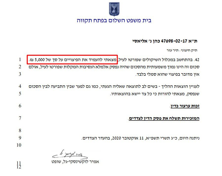 בפסיקה קבע השופט אמיר לוקשינסקי: "כאשר משפיענים מפרסמים דעה או לשון הרע כלפי אדם שאינו מפורסם אלא הינו אדם מן היישוב, קל וחומר כאשר מדובר באדם מוחלש ובוודאי סובל מפגיעות רגשיות ונפשיות כמו במקרה הזה שדעותיו ככלל לא מעניינות אף אחד ואין בהן שום עניין ציבורי – הפגיעה אינה מידתית"