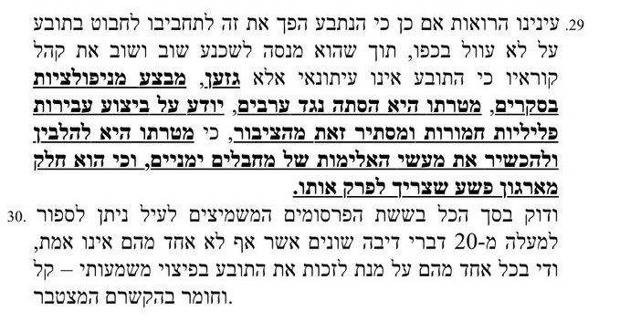 עוד כתב סגל: "לשם ההמחשה: פעיל שמאל שבמשך שנה, אף שהוזהר פרסם כתריסר פוסטים בהם נטענו הטענות הבאות. אני משוכנע שהוא ישמח על ההזדמנות להוכיח את אמיתות טענותיו בבית המשפט, וכמוהו כל מי שיעז להפיץ שקרים והסתה ברשת."