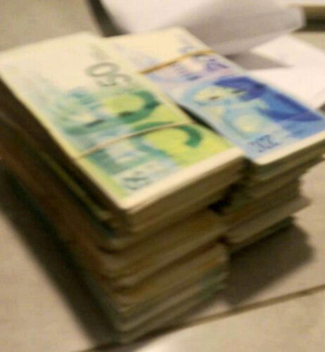 כמו כן תפסה המשטרה סכום כסף של 190,000 שקלים במזומן בתוך כספת החשודים כפדיון מפעילות של סחר בסמים. כאמור, החשודים (21 בת ים, 23 חולון) נעצרו לחקירה בתחנת המשטרה והיום (ב') בעוד זמן קצר ייערך דיון ערר בבית משפט השלום להארכת מעצרם.