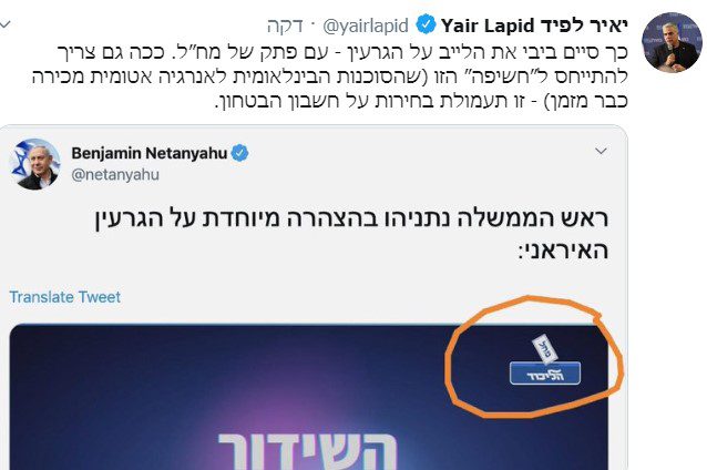 Posted by Yair Lapid – יאיר לפיד on Monday, 9 September 2019