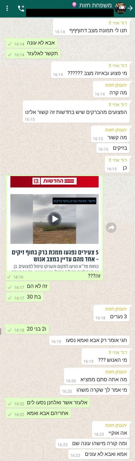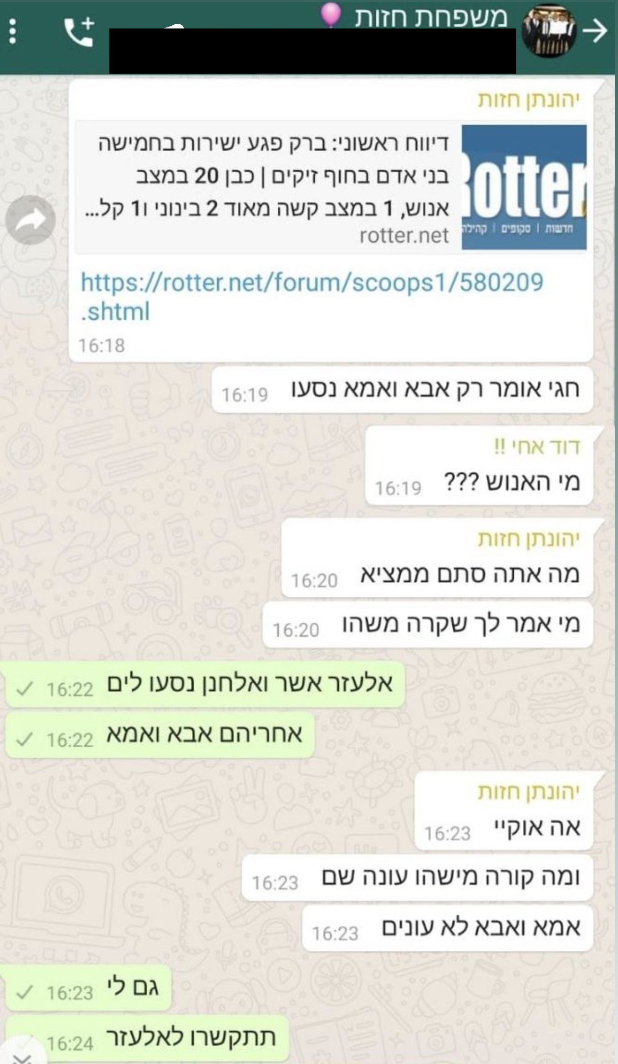 הבוקר נחשף התכתבות בני המשפחה לפני שנודע להם על הטרגדיה הקשה
