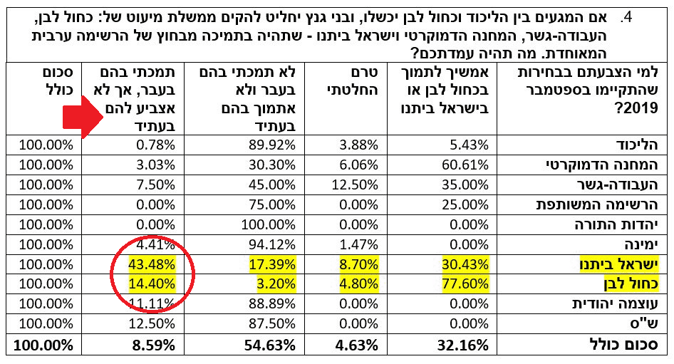 15% ממצביעי כחול לבן לא יצביעו לגנץ בעתיד, וכ 43% ממצביעי ליברמן לא יתמכו בו שוב.