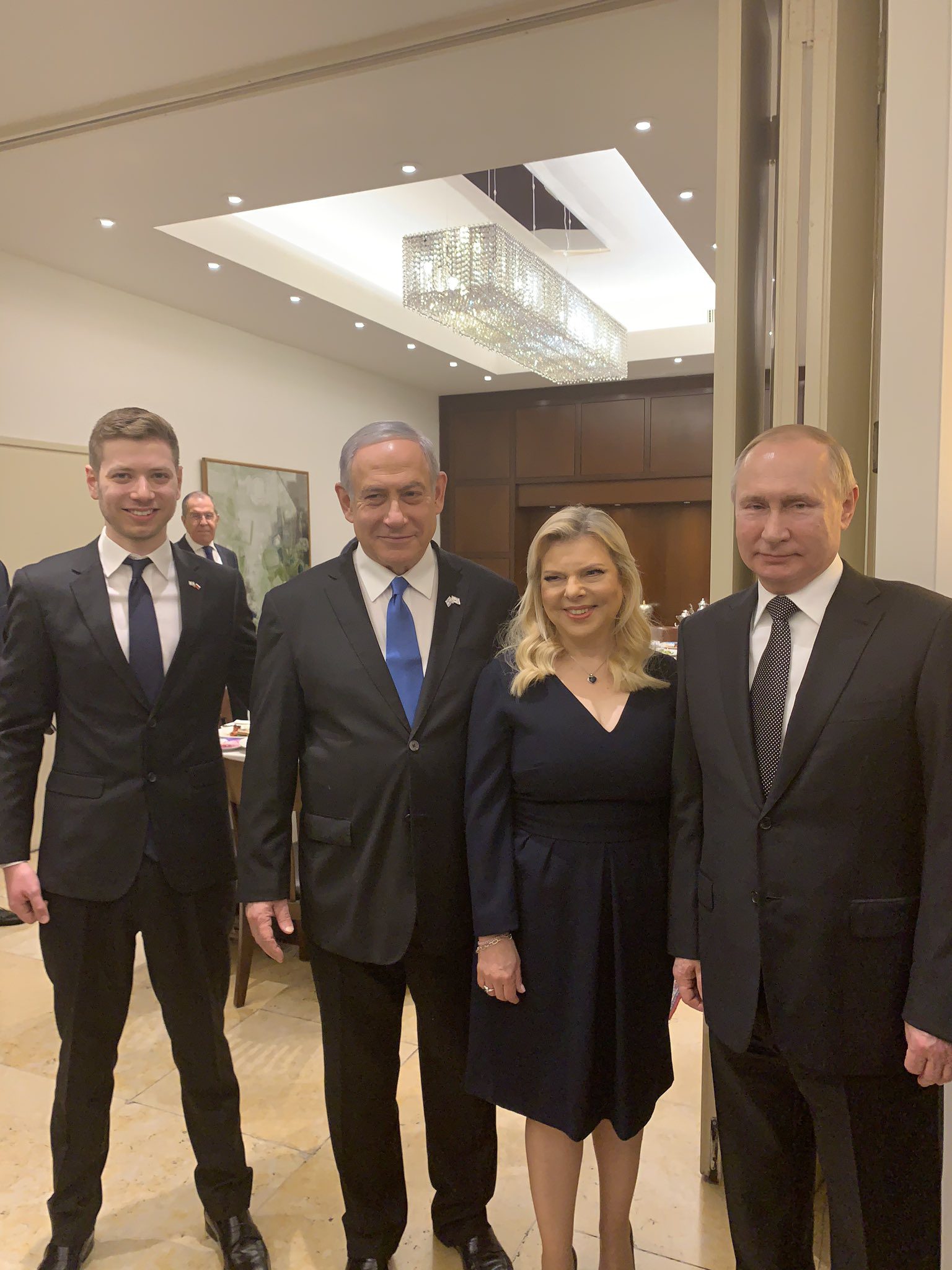 נשיא רוסיה פוטין נפגש כעת בירושלים עם ראש הממשלה נתניהו. בנו יאיר, לא פספס הזדמנות להצטלם ולפרסם תמונות בטוויטר וברכה בשפה הרוסית: "ברוך הבא לישראל, נשיא רוסיה, ולדימיר פוטין! נשיא הפדרציה היקר ולדימיר ולדימירוביץ 'פוטין, ברוך הבא לישראל!" - צפו