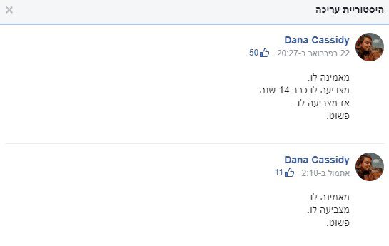 דקות לאחר הפרסום של יאיר נתניהו, שינתה דנה את הפוסט והכותרת והסירה את הציטוט שהיא מעריצה שלו מהצבא כבר 14 שנה