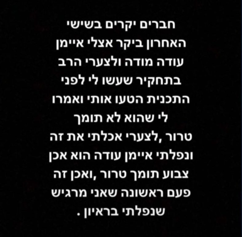 בפוסט שפרסם באינסטגרם כותב ברקוביץ': "חברים יקרים, בשישי האחרון ביקר אצלי איימן עודה. מודה ולצערי הרב בתחקיר שעשו לי לפני התכנית הטעו אותי ואמרו לי שהוא לא תומך טרור, לצערי אכלתי את זה ונפלתי. איימן עודה הוא אכן צבוע תומך טרור, ואכן זה פעם ראשונה שאני מרגיש שנפלתי בראיון"