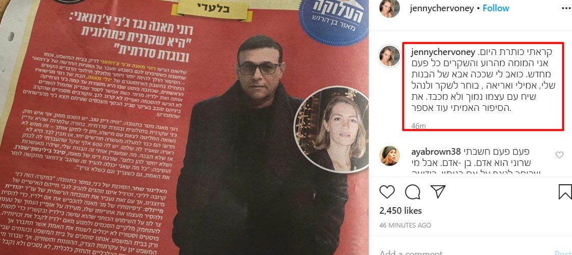 הקרב יוצא לרשת: הדוגמנית ג'ני צ'רוואני מגיבה למתקפה של הפרוד שלה המיליונר רוני מאנה: "אני המומה מהרוע והשקרים כל פעם מחדש. כואב לי שככה אבא של הבנות שלי, אמילי ואריאה, בוחר לשקר ולנהל שיח עם עצמו, נמוך ולא מכבד. את הסיפור האמיתי עוד אספר".