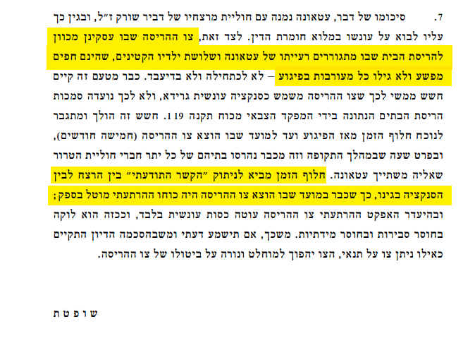 כזכור, צה"ל מיוזמתו הסכים להרוס רק את הקומה השנייה בה מתגוררים משפחת המחבל. אך כאמור בג"ץ קבע כי גם את זה אסור להרוס.