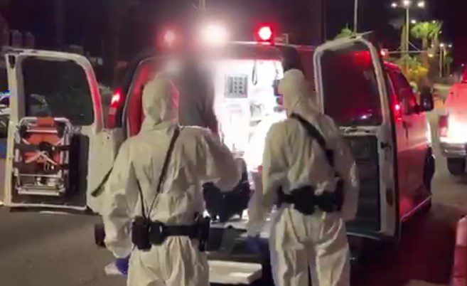 אמש, התקבלה קריאה על חשוד כחולה קורונה שאותר ליד התחנה המרכזית בעיר. השוטרים התלבשו בביגוד מיגון מלא וייעודי, איתרו את החשוד כחולה קורונה בסמוך לתחנה המרכזית והזמינו צוות רפואי שייקח אותו לבית החולים המקומי.