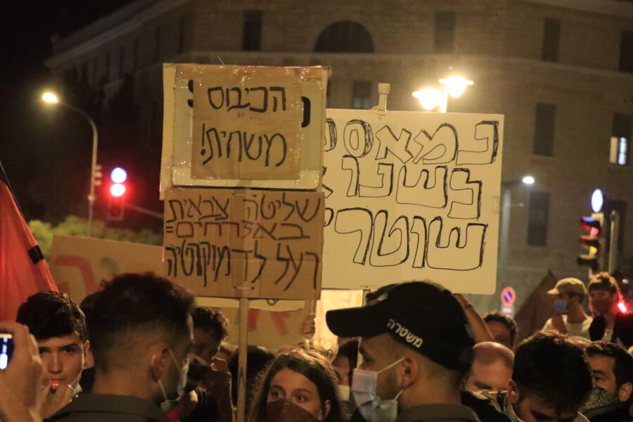 עוד נמסר: "למרות המאמצים והמשאבים הרבים שהשקיעה משטרת ישראל כדי להבטיח מחאה בטוחה וחופש ביטוי לכל, ניכר כי קבוצות שונות בחרו בדרך של פרובוקציה, לרבות אלימות פיזית ומילולית כנגד שוטרים שתפקידם לשמור על הביטחון והסדר, גם של המוחים עצמם"