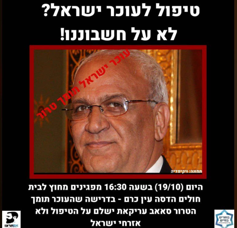 אשפוז עריקאת על חשבון אזרחי ישראל, היא יריקה בפרצוף של משפחות שכולות. אנו מחוץ לבית חולים. הצטרפו אלינו>